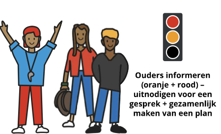 Ouders van kinderen met een oranje of rode score worden geïnformeerd en uitgenodigd voor een gesprek. Samen met de vakleerkracht en intern begeleider wordt een plan van aanpak opgesteld.